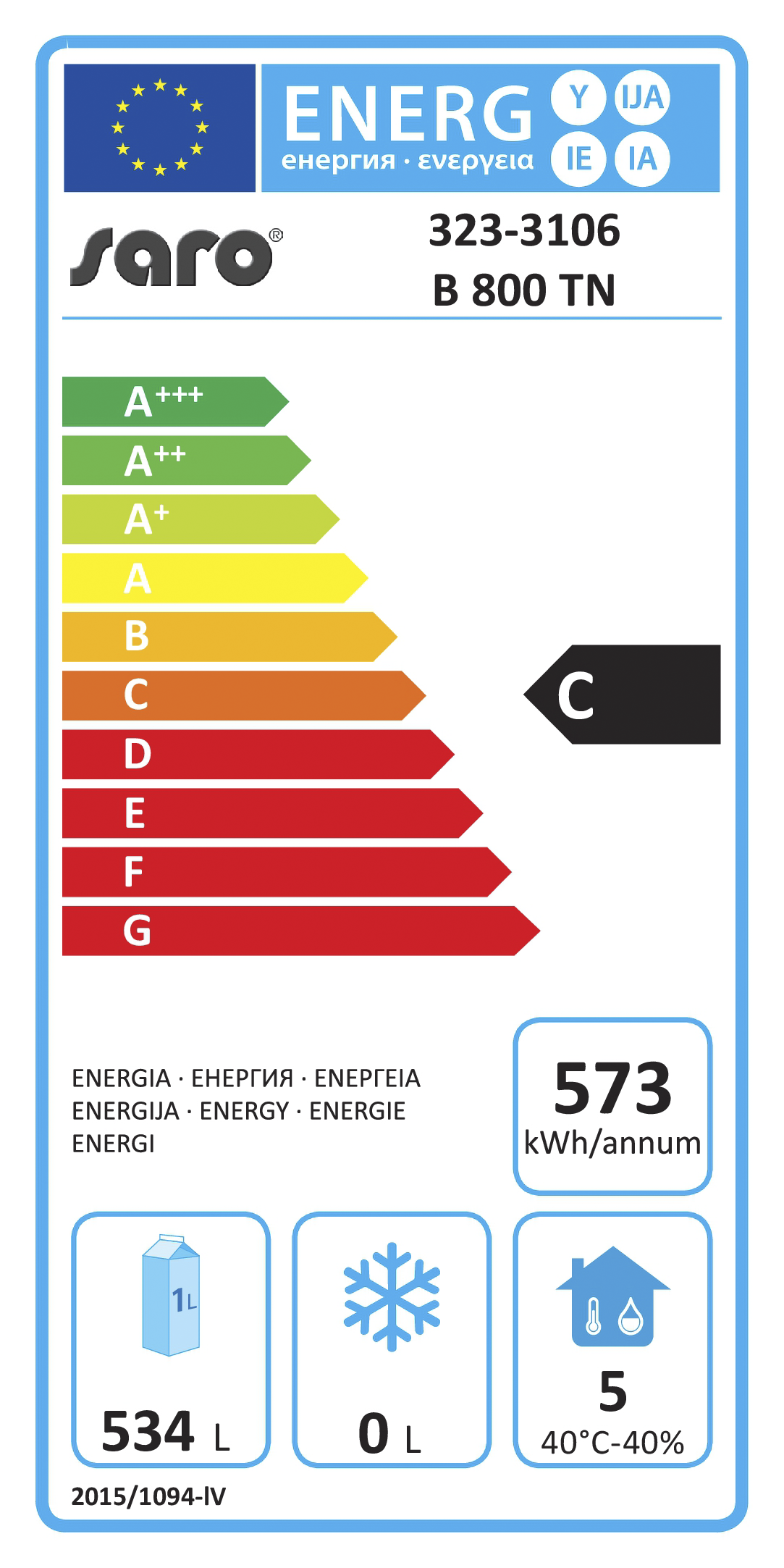 SARO Bakkerij koelkast met luchtkoeling model B 800 TN