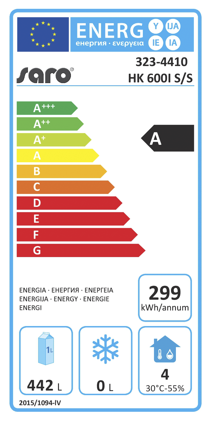 – Materiaal: (behuizing) RVS; (binnenkant) kunststof, wit – 1 deur, zelfsluitend, afsluitbaar – 4 in hoogte verstelbare, geplastificeerde roosters – Led-binnenverlichting (1x 14,4 W), apart schakelbaar – Digitale temperatuurregeling – Isolatie van polyurethaan op waterbasis, 50 mm – Statische koeling met circulerende luchtventilator – Automatische ontdooiing – Geschikt voor klimaatklasse 4 – Temperatuurbereik +1 /…