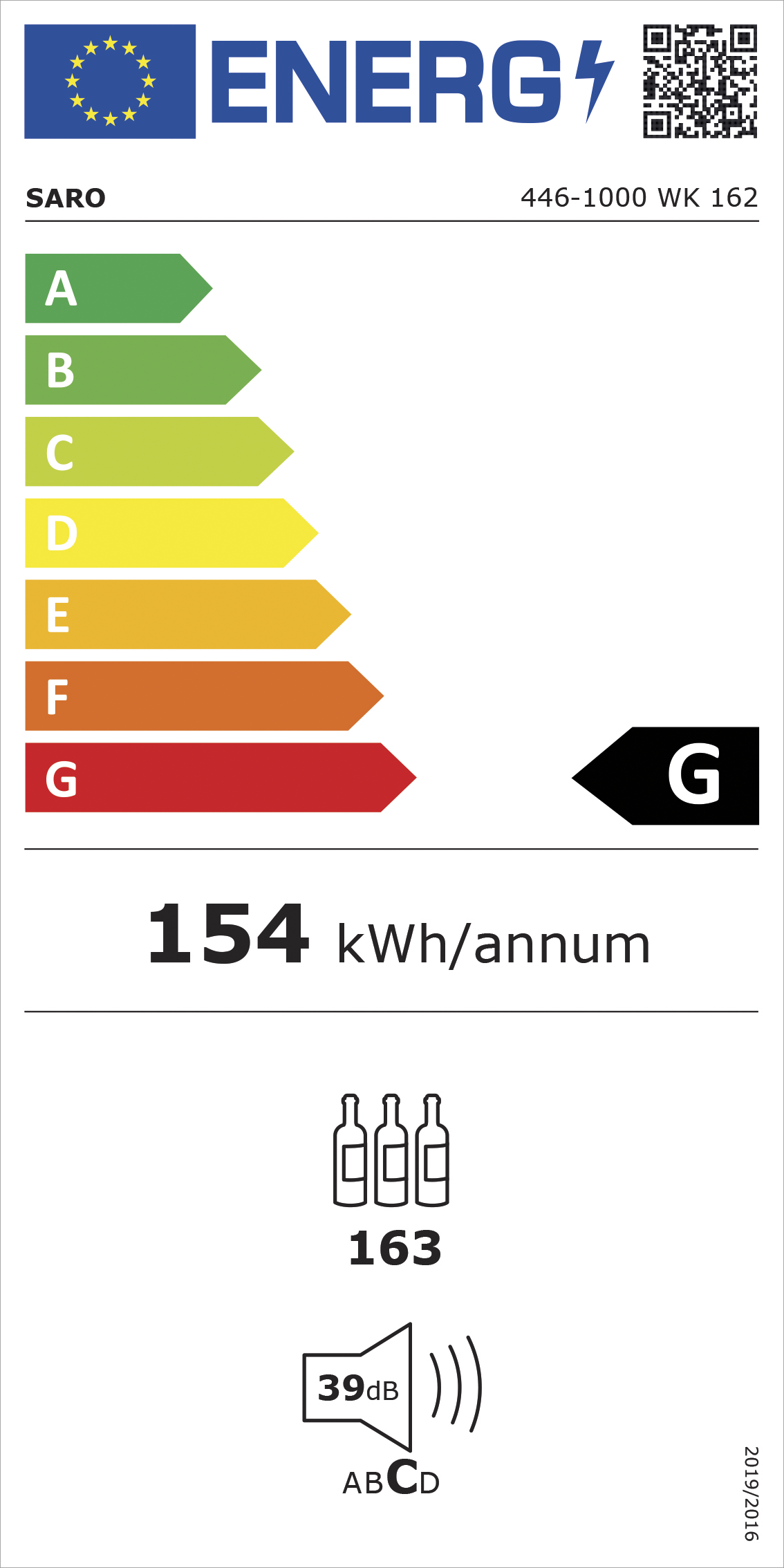 – Materiaal: (behuizing) staal gepoedercoat, zwart; (interieur) kunststof, zwart – Glazen deur, afsluitbaar – Deur met Low-E glas voor minder energieverlies – Met invertercompressor zijn de prestaties gebaseerd op de vereiste koelvraag – Digitale besturing – Isolatie: 50 mm – 8 houten roosters voor ca. 163 standaardflessen – LED-verlichting (wit), apart schakelbaar – Geforceerde luchtkoeling…