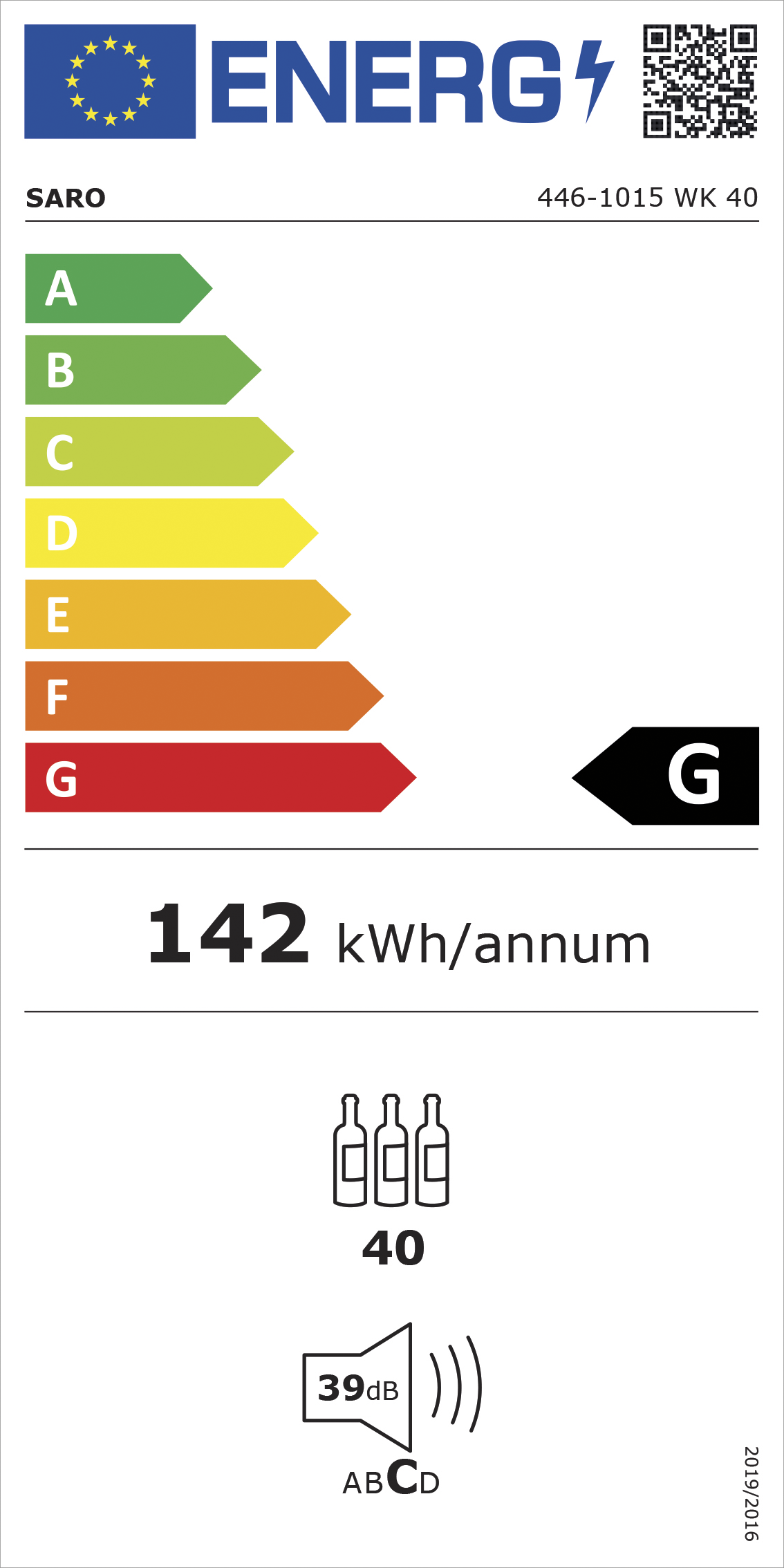 – Materiaal: (behuizing) staal gepoedercoat, zwart; (interieur) kunststof, zwart – Glazen deur, afsluitbaar – Digitale besturing – Isolatie: 40 mm – 1 klimaatzone – 5 houten roosters voor ca. 40 standaard flessen – LED-verlichting (wit), apart schakelbaar – Geforceerde luchtkoeling – Automatische ontdooiing – Temperatuur +5 / +20 °C – Aansluiting: 230 V – 50…