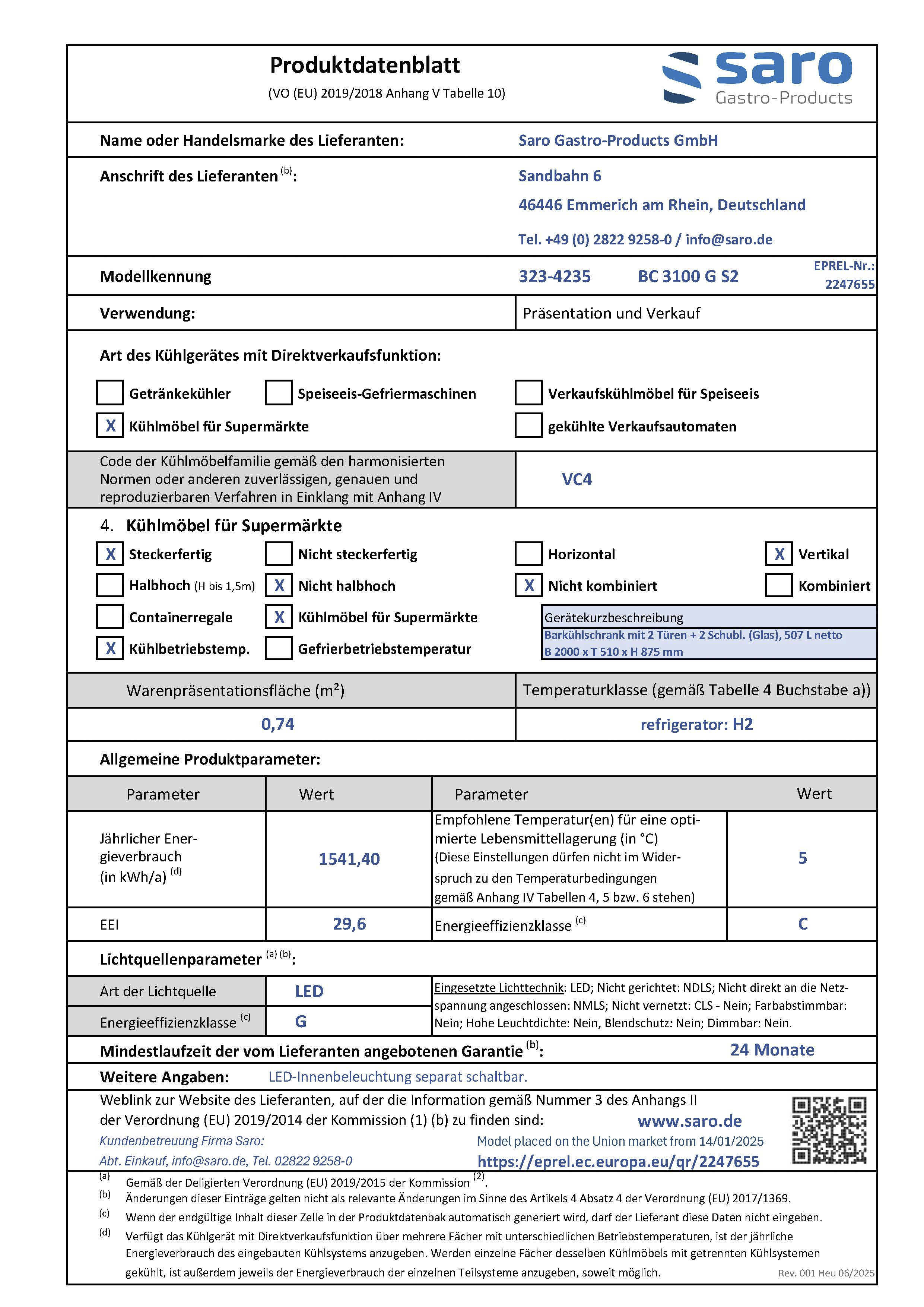 Hersteller: Saro Gastro-Products GmbH - Sandbahn 6 - 46446 Emmerich am Rhein - DEUTSCHLAND / GERMANY - info@saro.de - www.saro.de