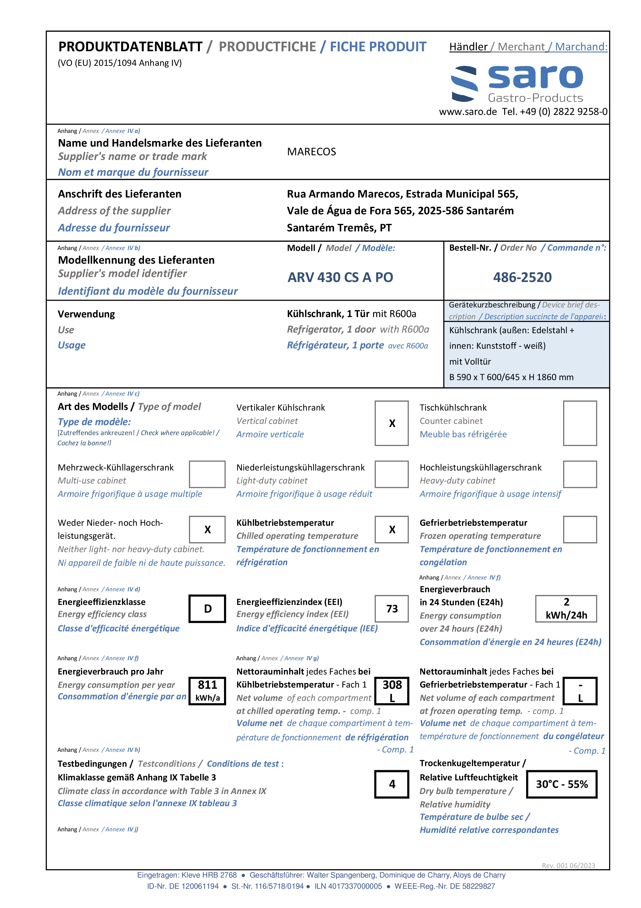 – Energie-efficiëntieklasse: D (spectrum A+++ tot E)