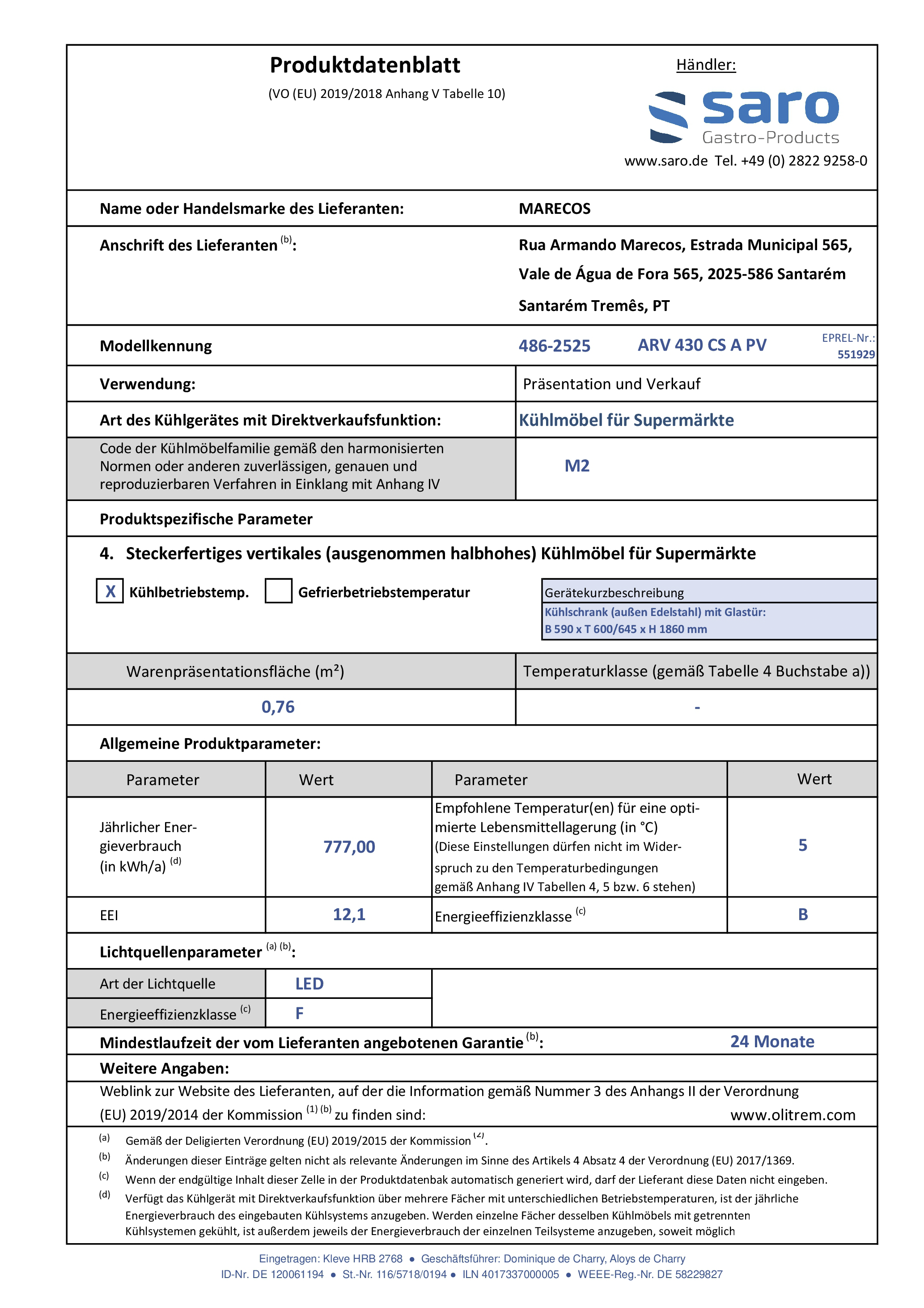 – Energie-efficiëntieklasse: B (spectrum A tot G)