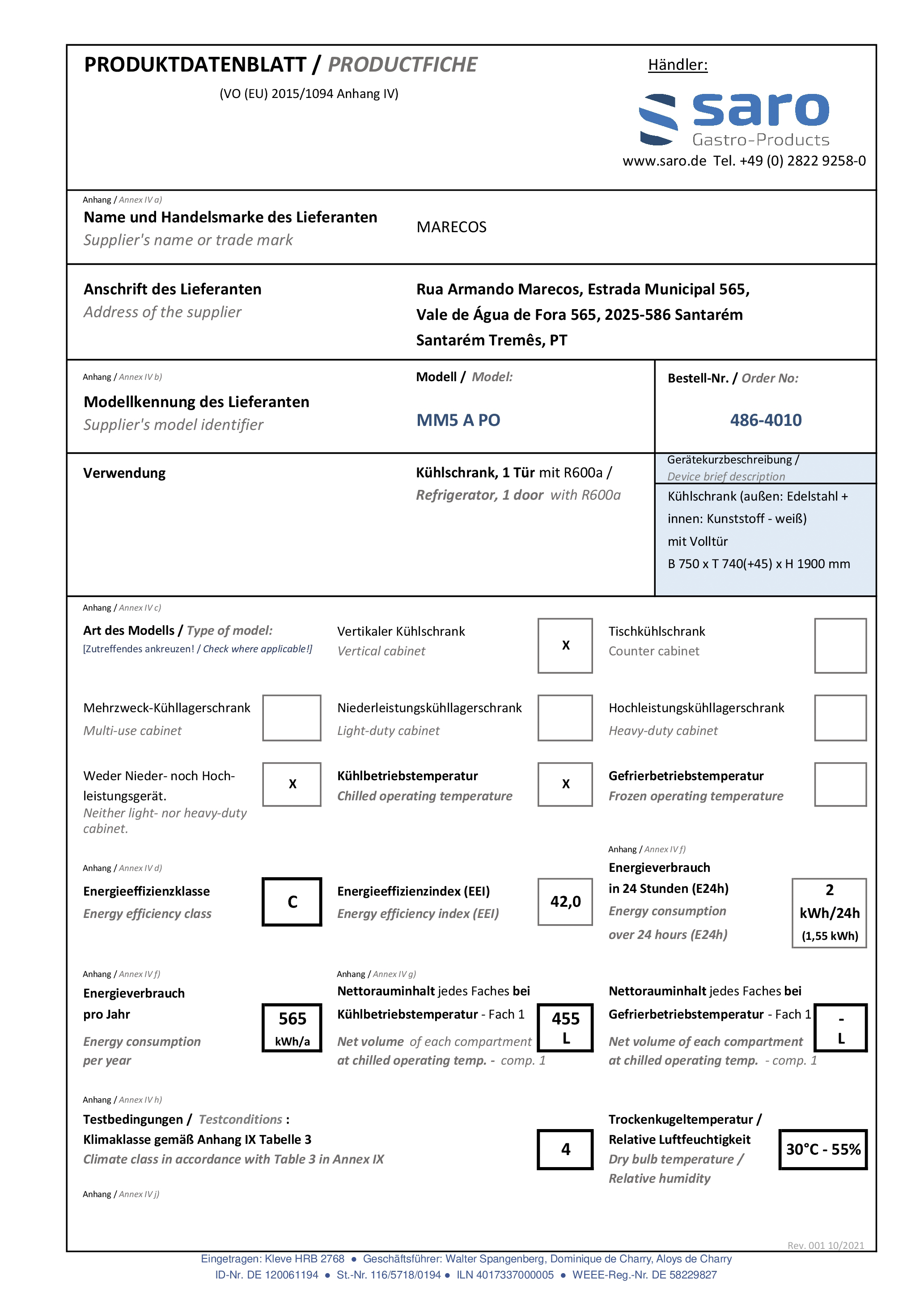 SARO Koelkast model MM5 A PO