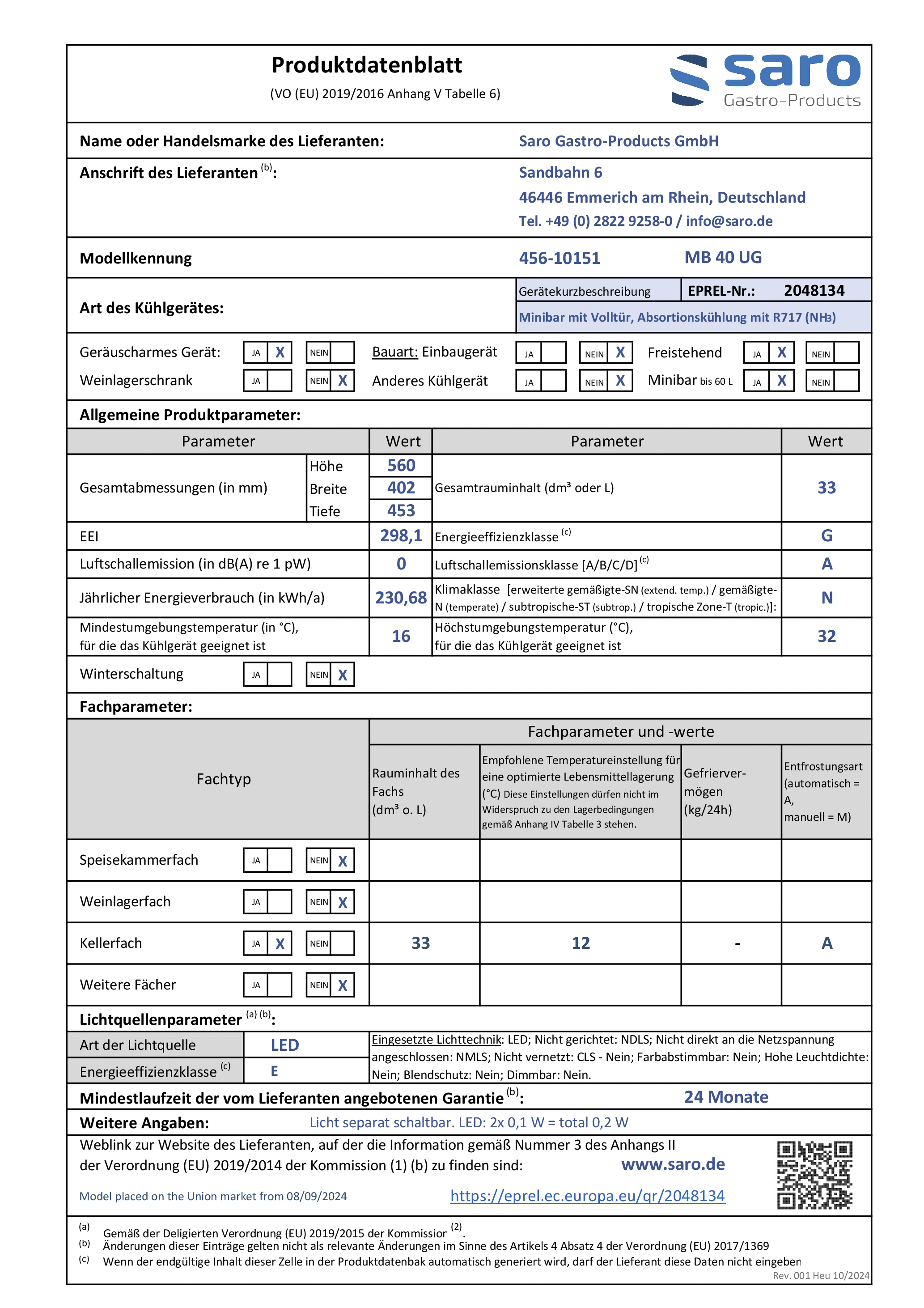 Hersteller: Saro Gastro-Products GmbH - Sandbahn 6 - 46446 Emmerich am Rhein - DEUTSCHLAND / GERMANY - info@saro.de - www.saro.de