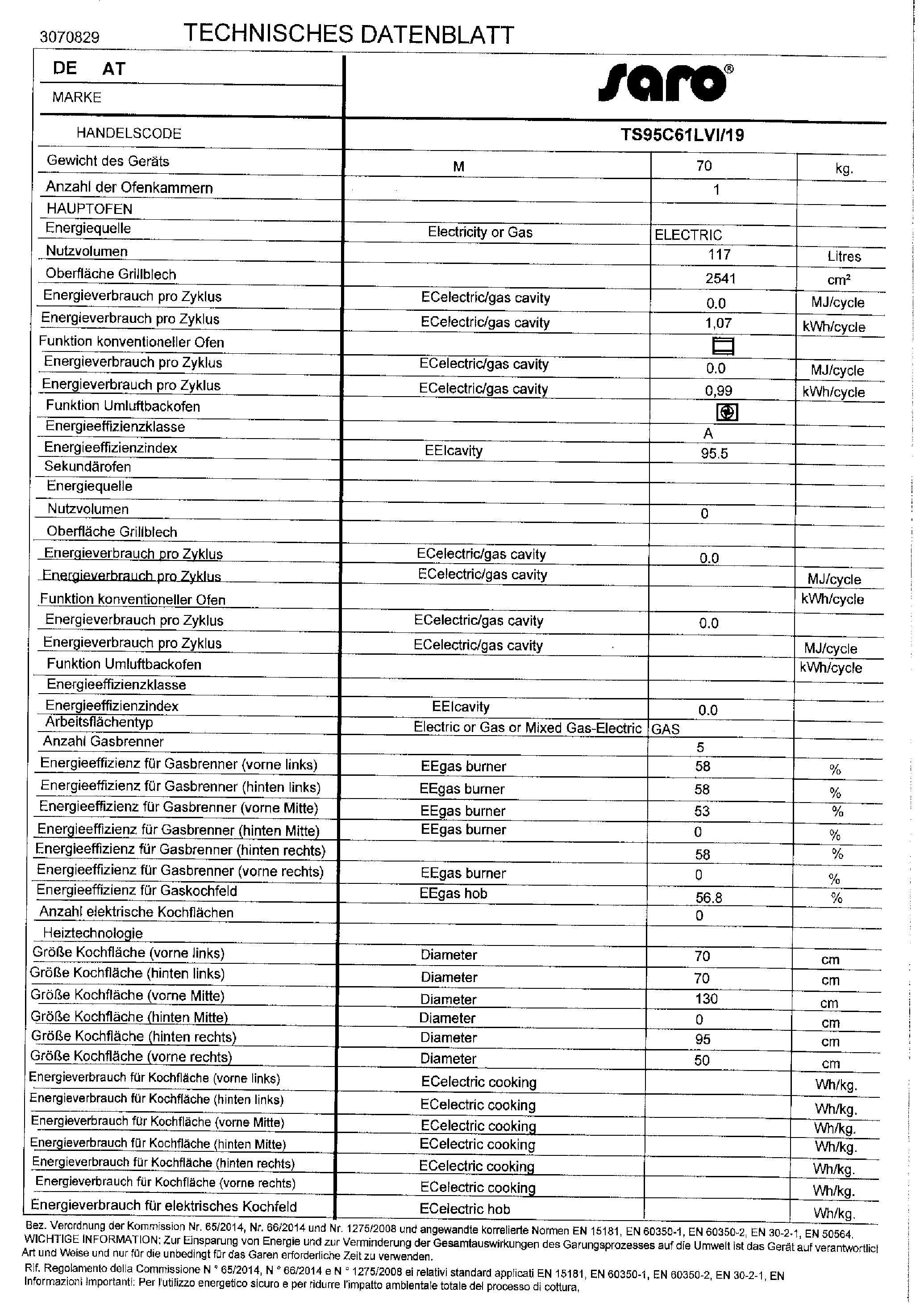 | Aansluitwaarden | 230 V – 50 Hz – 2,7 kW, Gasbrenner:, 1 x 1 kW, 2 x 1,75 kW, 1 x 3 kW, Wokbrenner: 4,25 kW |