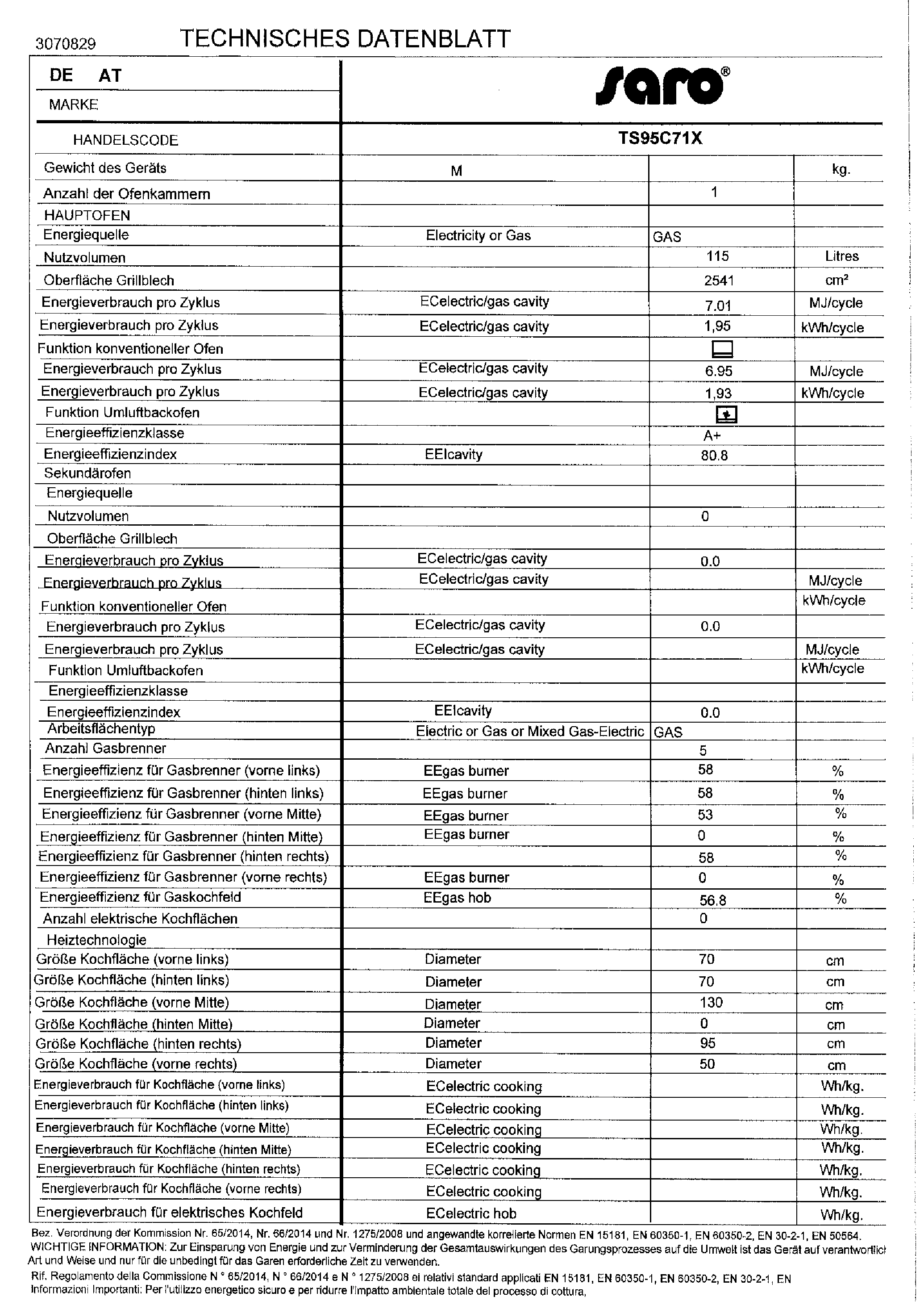 SARO Multifunctioneel gasfornuis met gasoven model TS95C71X
